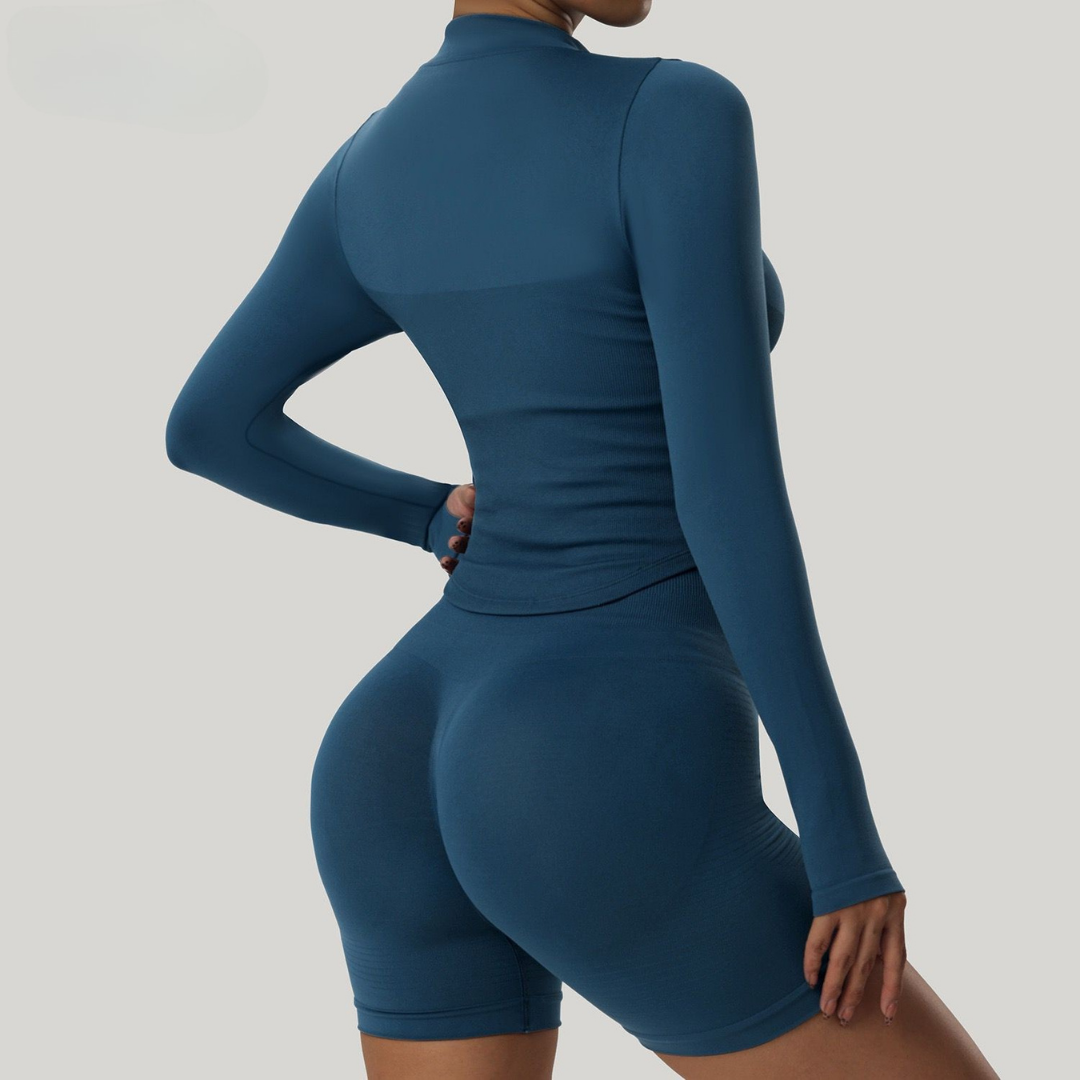Elevate your workout wardrobe with our Women's Zipper High Neck Long Sleeve Yoga Jacket. Crafted for outdoor fitness, yoga, and gym sessions, this sleek and slim-fit jacket combined with stretchable fabric offers superior comfort with quick-dry fabric that wicks away moisture. Designed for active women, it features a functional zipper, a high neck for added warmth and style, and a perfect fit for all your fitness needs. Whether you're practicing yoga or hitting the gym, this versatile jacket provides both performance and fashion in one.